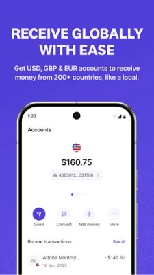 Buɗe asusun kuɗi na duniya (USD, GBP, EUR) a cikin mintuna kaɗan, ba tare da takardu masu wahala ba, kuma ku karɓi biyan kuɗi daga sama da ƙasashe 190. Canza kuɗi nan take a farashin kasuwa na gaske, ba tare da ɓoyayyun kuɗaɗe ba, ko ajiye kuɗin ku a cikin manyan kuɗaɗe na duniya. Kuma tare da katunan USD na *Raenest* – na zahiri ko na kama-da-wane – kuna iya kashe kuɗi a ko'ina, daga manyan dandamali kamar Google Ads da Apple zuwa sayayyar yau da kullun, duk ba tare da tsammanin kuɗaɗe ba. Aika kuɗi cikin sauri da aminci zuwa sama da ƙasashe 50, da farashi mai sauƙi da musayar kuɗi mai bayyane, yana mai da shi cikakke ga iyalai da kasuwancin da ke da buƙatun ketare.